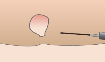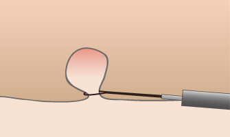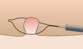 深い筋層まで刈り取らないように、やけどを最小限に抑え高周波を流して一気に焼き切ります。焼き切る際の痛みは感じません。最後に取り残しと出血がないかを確認して終了です。